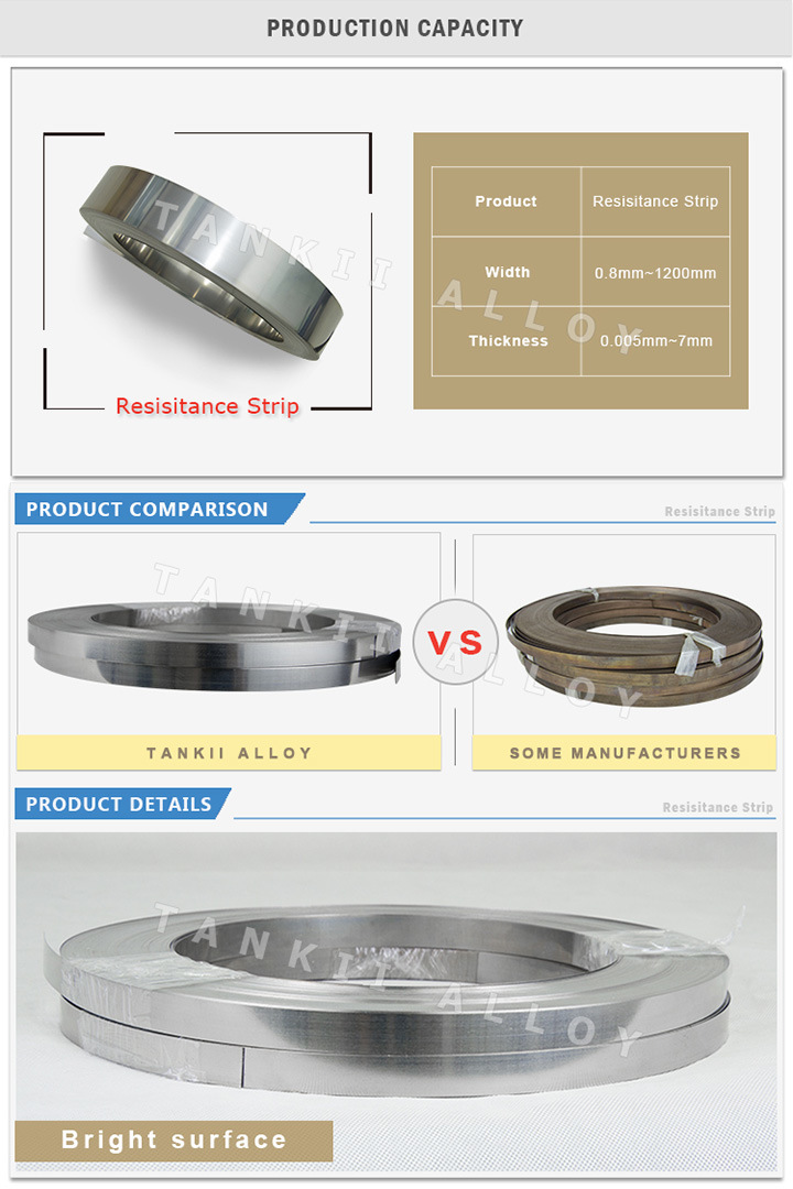 Aleación de níquel-cromo tiene una alta resistividad, buenas propiedades de anti-oxidación, resistencia a alta temperatura, muy buena forma de estabilidad y capacidad de soldadura. Es ampliamente utilizada en materiales de elementos de calefacción eléctrica, la resistencia, hornos industriales, etc.